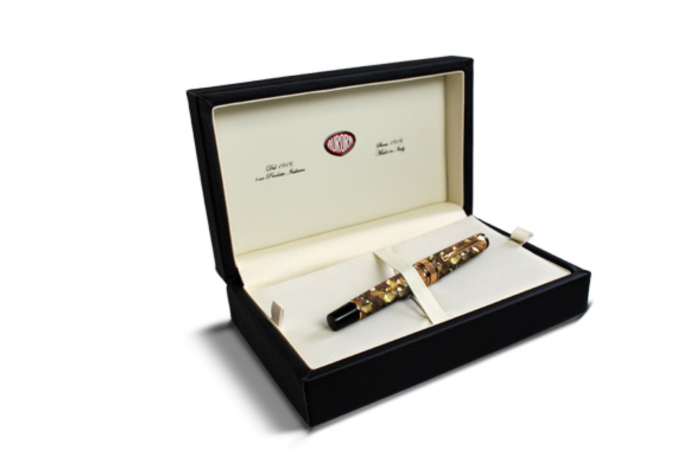 Limited to 365 numbered pieces, the Tortoiseshell sports an 18K gold nib and arrives in an Aurora display box.