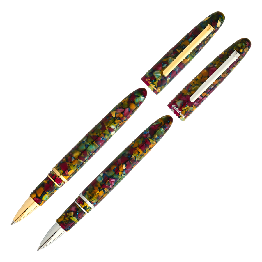 In each pen, you will find a kaleidoscope of floral accents, from greens to blues, deep reds to oranges, all displayed in a crackle - like pattern that intrigues the eye and inspires the imagination.