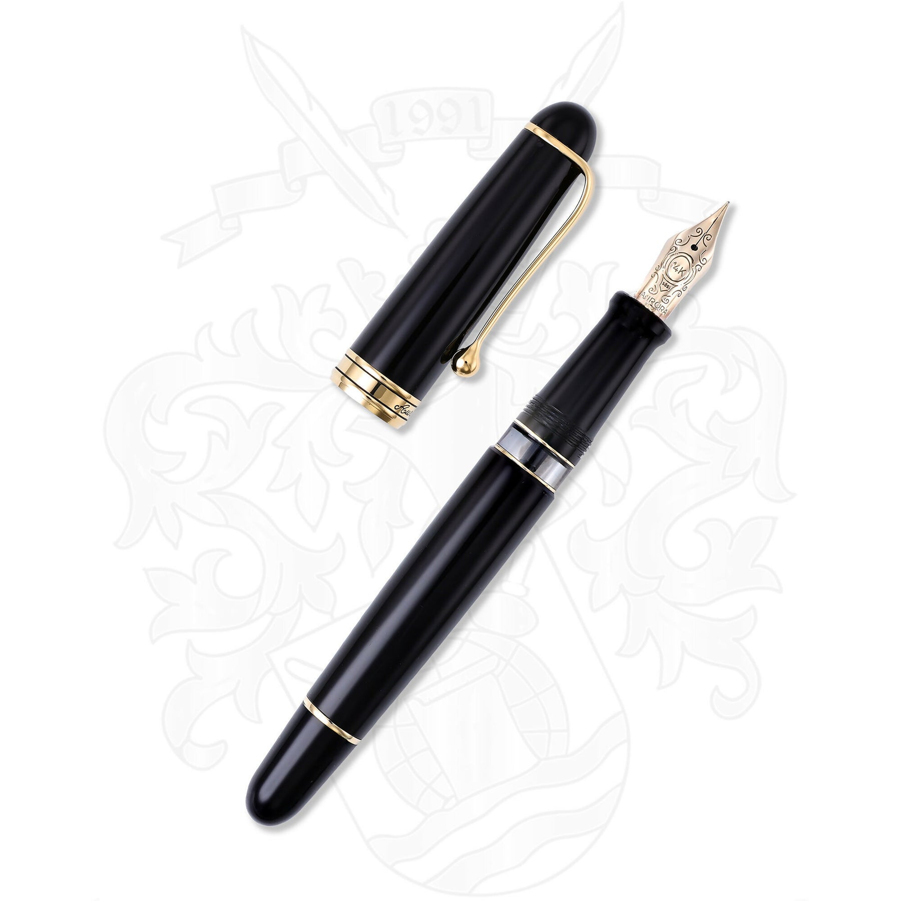 Aurora 88 Large Black and Gold Fountain Pen