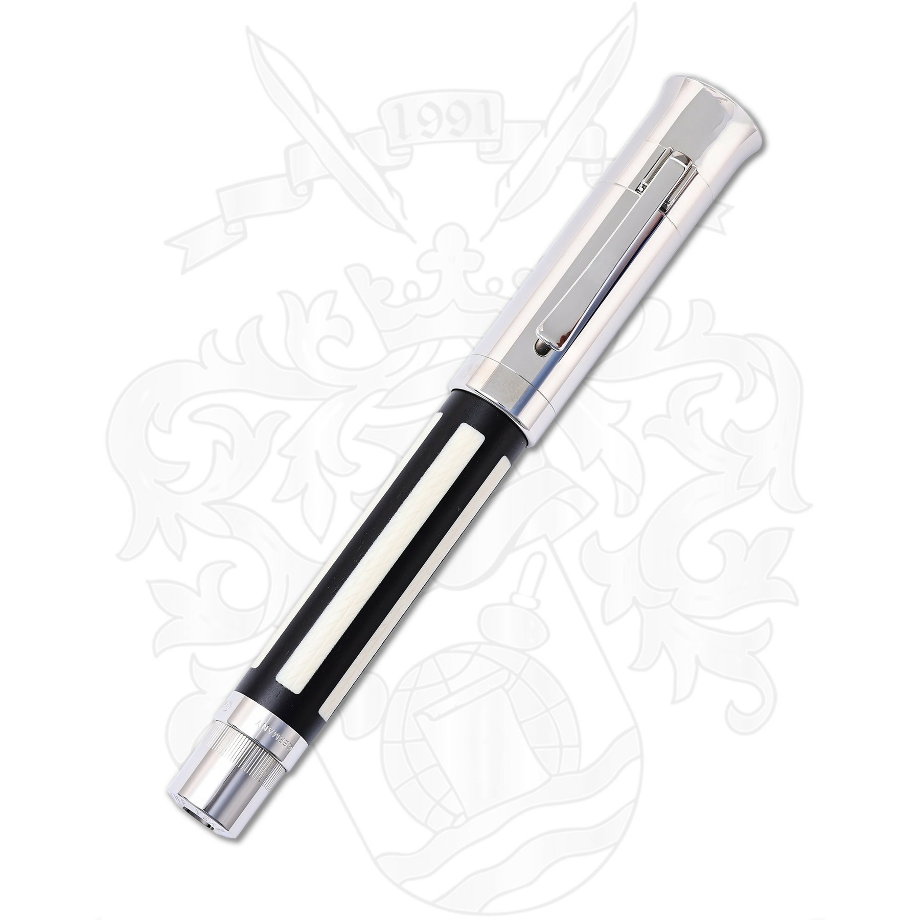 Each pen features a barrel crafted from carefully selected fossilized mammoth tooth, a material that is both visually striking and historically significant. Over millennia, the natural aging process creates intricate patterns and warm, earthy tones, ensuring that every pen is completely unique. The material is expertly cut, stabilized, and polished by master artisans, transforming ancient organic matter into a refined, contemporary work of art.