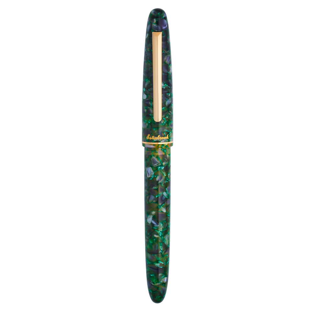 Indulge your inner paleontologist with the Esterbrook Estie Jurassic fountain pen. This new seasonal, limited production Estie features the Esterbrook interchangeable nib system that allows for flexibility and longevity, while the deep green color pays homage to both classic and contemporary styles. In addition to the classic-and-always-popular Esterbrook nib sizes, his timeless writing instrument is offered with the custom "Fude" nib, a new foray from Esterbrook, designed by Josh Lax of the JJ Lax Company, which offers amazing line variation from broad to extra fine all in one unbelievable nib grind.
