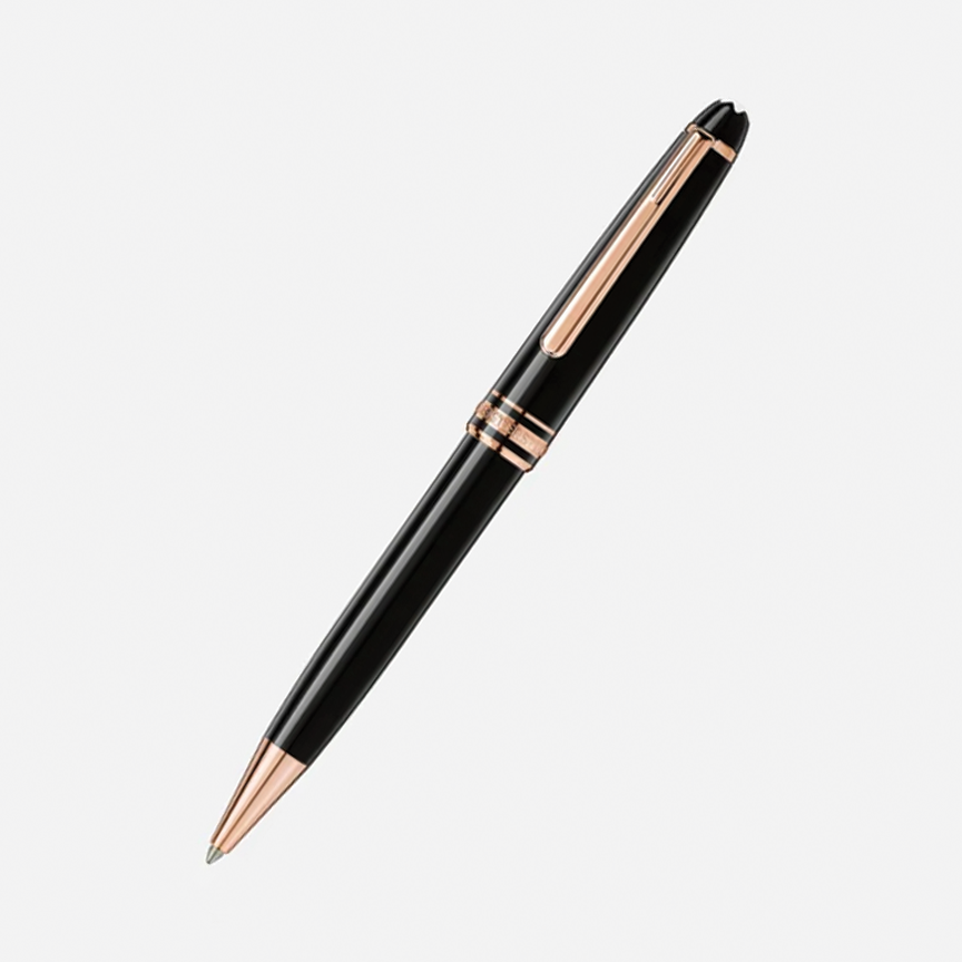 Montblanc Meisterstück Classique Rose Gold-Coated collection is a design that writes history. Introduced in 1924, a word meaning “Masterpiece,” the Meisterstück has become the symbol for high quality luxury writing. The cap and barrel are crafted in black precious resin featuring the iconic white Montblanc emblem inlaid in the cap top.
