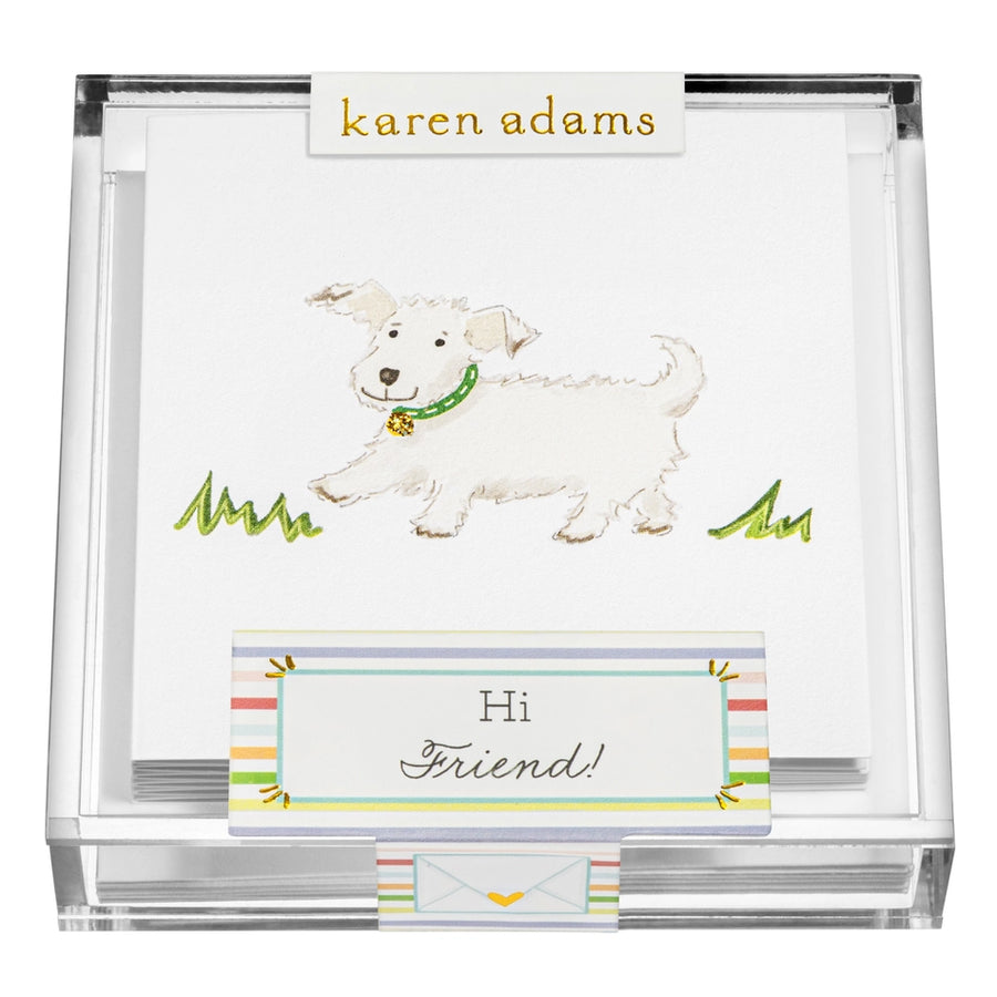 Hi Friend with this perfectly adorable box of hand-glittered cards featuring a dog. Book folded cards, blank on the inside.