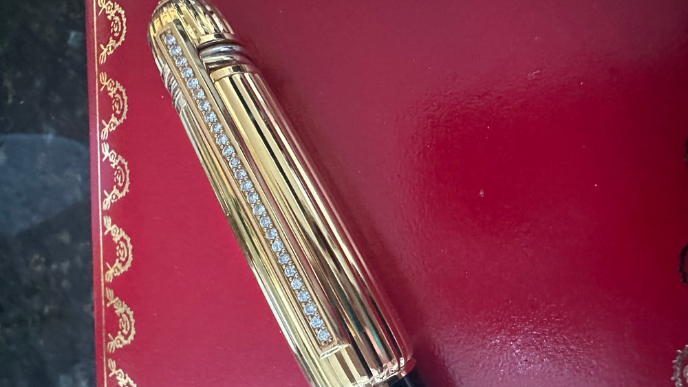 Introducing the Cartier Diamond Cap Pasha Fountain Pen, a luxurious writing instrument that embodies the elegance and craftsmanship for which Cartier is renowned. Released in 2002, this fountain pen is part of Cartier’s esteemed Pasha collection and is designed for those who appreciate the finer things in life.