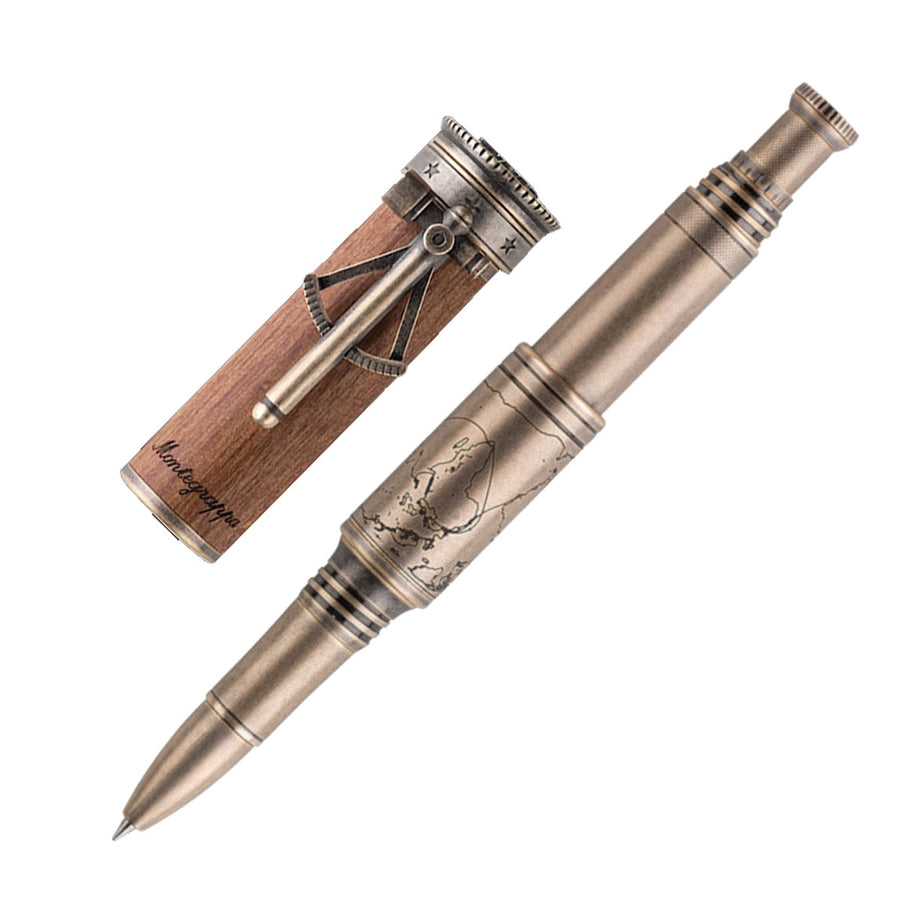 Age of Discovery is a mariner’s telescope in miniature, handcrafted from mahogany and brass. Materials are selected for historical accuracy, as well as their ability to age gracefully: becoming shinier with repeated use. Its vintage charms extend to a sextant-shaped clip and a rustic reproduction of Magellan’s pioneering route around the world. But it is on the inside where this writing tool’s true pedigree is revealed.