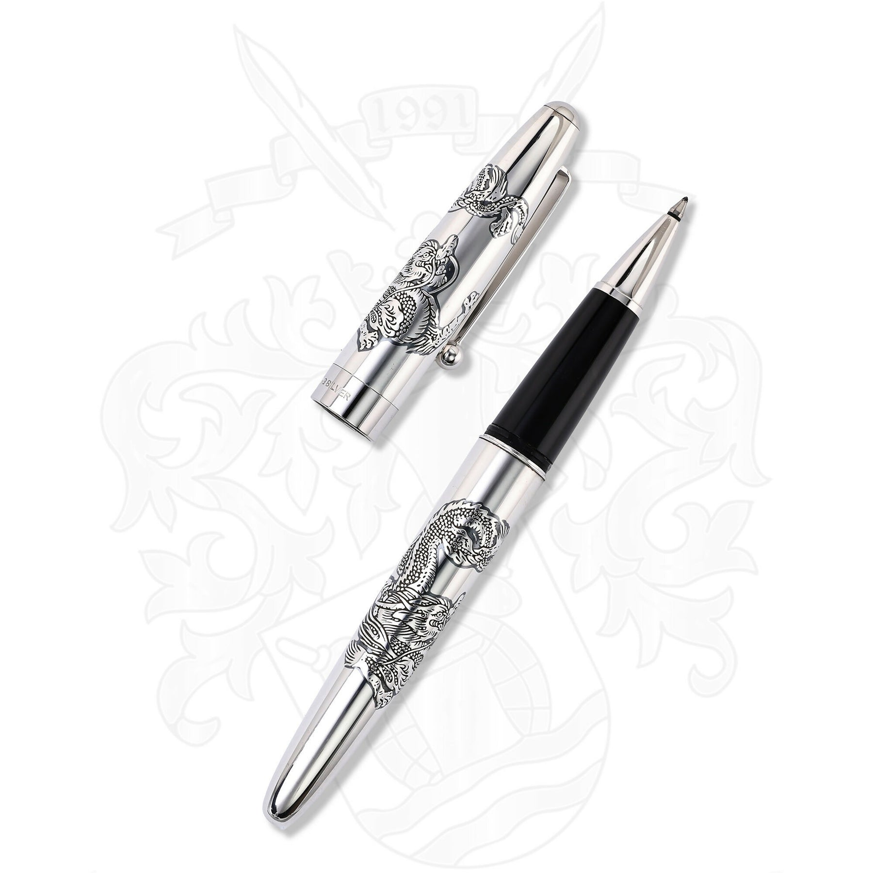 • The Dragon Motif: The barrel and cap feature a majestic dragon, a symbol of power, wisdom, and good fortune in East Asian culture. The artwork is meticulously etched or hand-engraved, adding tactile depth to the polished silver surface.