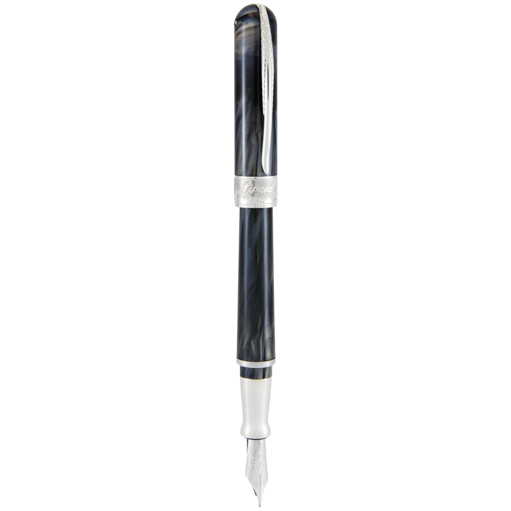 The Avatar's magnetic twist cap has a film over the internal magnets to protect them from corrosion and allow for a soft touch closure. The solid marine steel clip is Pineider’s interpretation of a goose quill, sturdy yet flexible, and is formed on an inner spring mechanism built into the top of the cap. The trim, including the cap band featuring the skyline of Florence, is palladium plated and nickel free.
