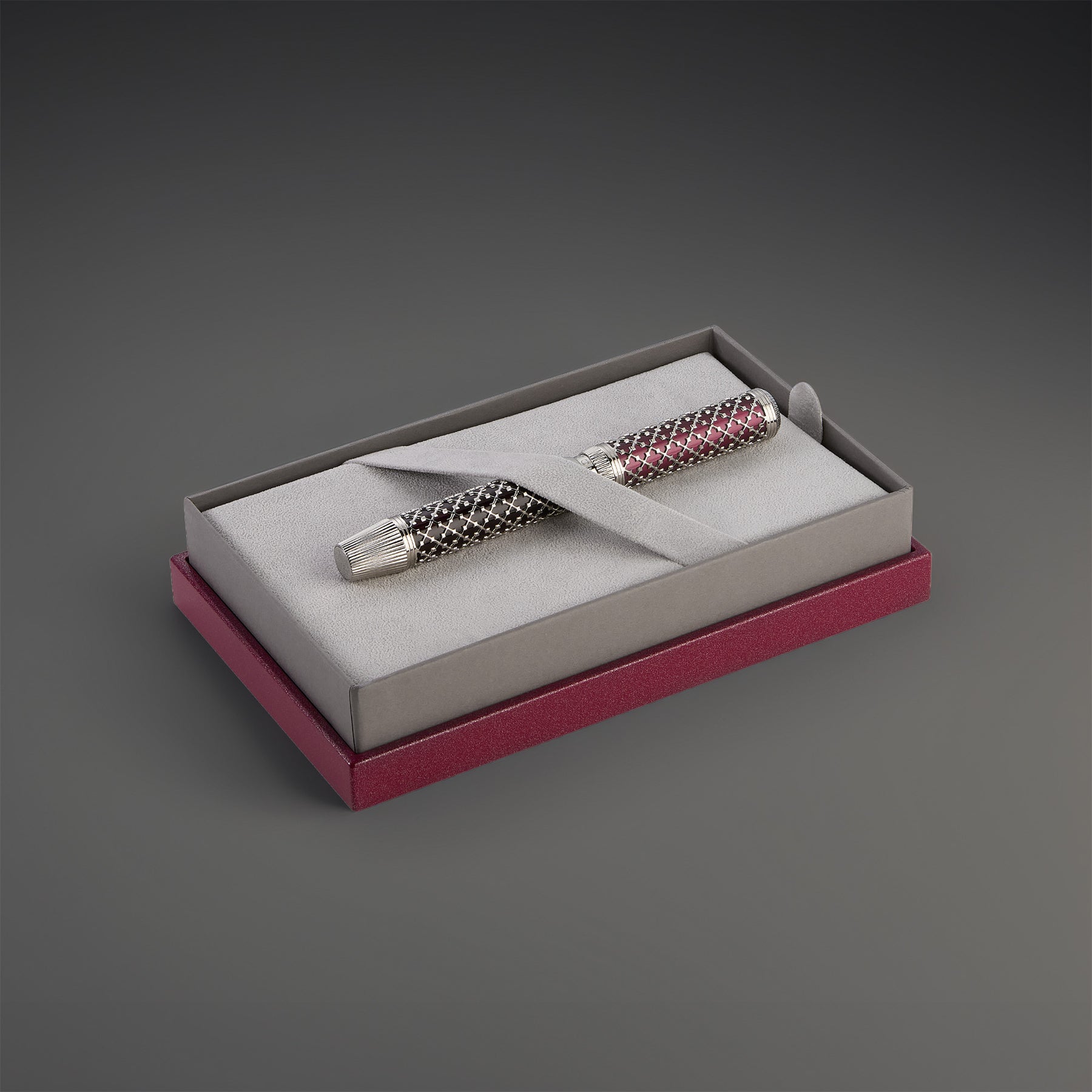 Each limited edition of 388 instruments is presented in a custom Bordeaux box. Its deep burgundy finish mirrors the noble tones of Venetian textiles, ensuring the presentation is as refined as the pen itself.