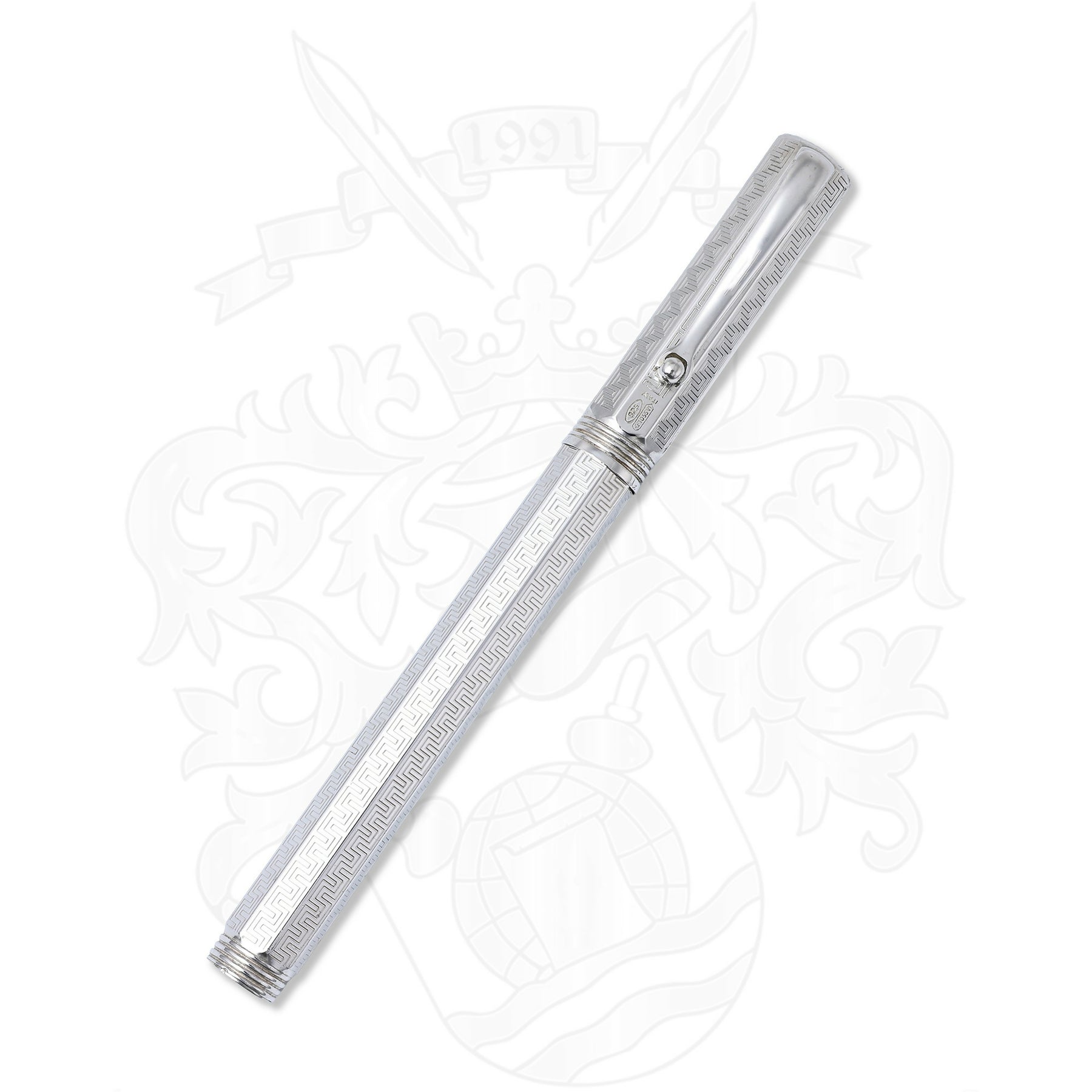 The Reminiscence pen is internationally acknowledged for its exceptional detail and luxurious materials. Its body is constructed of 925 sterling silver—and features fine, etched Montegrappa Greek fretwork. The writing experience is perfected with an 18k gold nib in an Extra Fine (F) size.