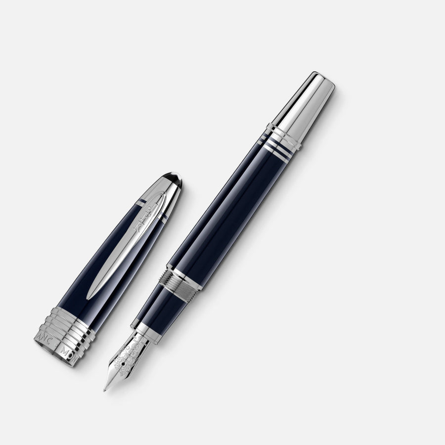 Commemorating one of the most revered figures of modern history, the Special Edition John F. Kennedy makes symbolic references to the life of J.F. Kennedy in subtle design details. The blue precious resin refers to both Kennedy’s time in the U.S. Navy and the famous Ivy League style. His initials “JFK” are engraved on the platinum-coated clip, and the three platinum-coated cap rings stand for Kennedy’s three brothers. In a tribute to the national hopes and dreams embodied in Kennedy’s pet project, the Apollo space programme, the handcrafted 585 gold nib is engraved with the lunar module that landed on the moon in 1969. The Special Edition is crowned by the Montblanc emblem in precious resin.