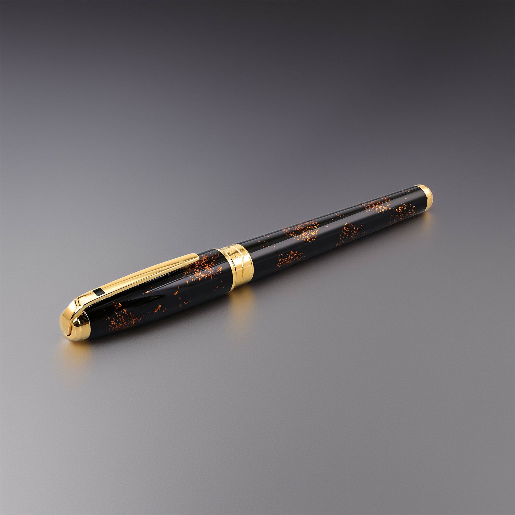 Finish: The pen is finished in black Chinese lacquer infused with gold dust, creating a shimmering, celestial effect.
