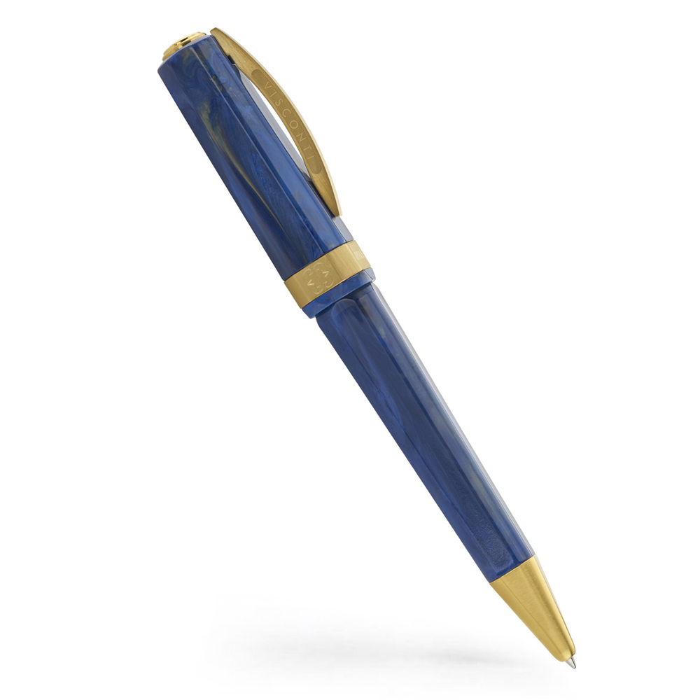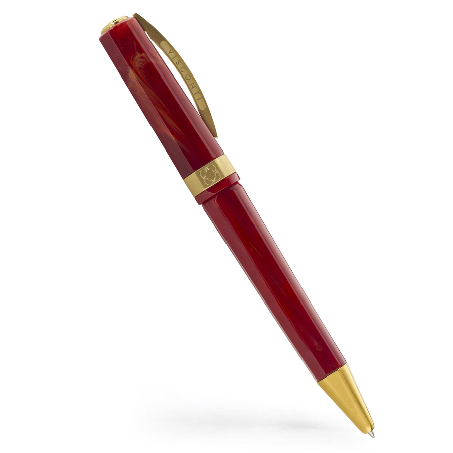 Each pen features details reminiscent of early Visconti designs. The classic ‘squaring the circle’ shape, a luxurious matte gold finish with detailed engravings and an abundance of innovation. Available in fountain pen, rollerball, and ballpoint.